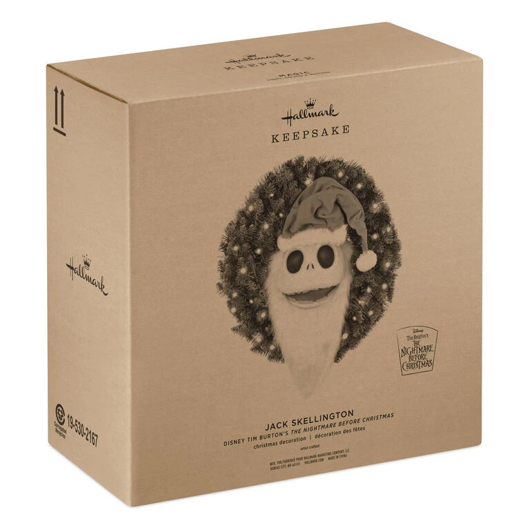 - Key Features: Connect the Magic Light, Sound and Motion wreath to the power adapter (included) to see it illuminate with LED lights. Press the button or use the motion activation sensor to see Jack move and hear favorite phrases from the film. Plugs into a standard 120-volt wall outlet.